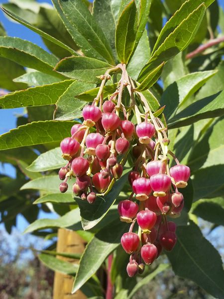 Proche de l'arbousier, ce grand arbuste ou petit arbre à feuilles persistantes est très ornemental pour sa floraison rose-rouge au début du printemps, ses fruits comestibles, évoquant des fraises, légèrement farineux et acidulés et son écorce lisse qui s'exfolie pour faire apparaître la nouvelle écorce couleur pistache. Malgré ses origines, il reste relativement rustique (-10°C à -12°C)