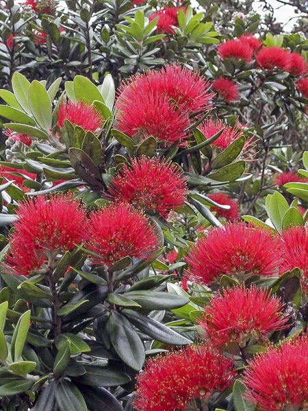 Arbre de Noël de Nouvelle-Zélande, aux feuilles elliptiques vernissées, à revers blanc et fleurs uniquement composées d'étamines rouge vif, en forme de pompon. Ne pas exposer aux gelées. Il atteint jusqu'à 20 m de haut dans son milieu d'origine, 2 à 3 m en véranda ou serre chaude.