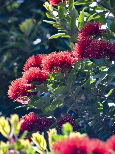Bel hybride de l'arbre de Noël de Nouvelle-Zélande, aux feuilles coriaces vertes et fleurs en forme de goupillons sphériques, ressemblant à celles des Calistesmon. Ne pas exposé aux gelées.
