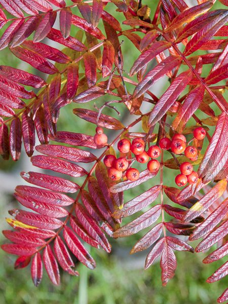 Arbre étalé. Feuilles pennées, 10-20 cm de long, comptant jusqu'à 33 folioles étroites, oblogues, luisantes, vert foncé, virant au rouge et au pourpre en automne. Corymbes aplatis de 10-15 cm de large, formés de fleurs blanches. Baies sphériques rouges de 2-6 mm de diamètre.