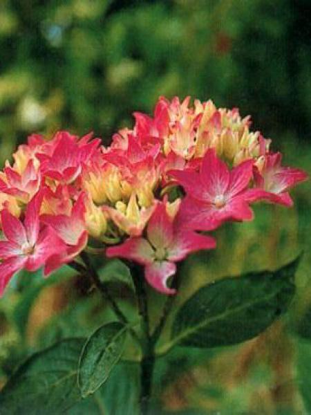 Parmi les l'Hydrangea macrophylla, on distingue deux types d'inflorescences : les têtes rondes (les plus connues) et les têtes plates. La gamme de couleur séchelonne du blanc le plus pur au bleu intense en passant par tous les tons du rose pâle au rouge foncé. La couleur de la fleur (excepté le blanc) peut varier suivant la nature du sol. Si il est acide (pH < 5,5) et qu'il contient du sulfate d'aluminium, les fleurs roses prendront une teinte bleue et les fleurs rouges deviendront violettes. L'Hydrangea macrophylla est un arbuste facile à vivre qu'on associera à d'autres hortensias ou à quelques plantes aimant les sols légèrement acides comme les fougères, les gaulthéries, les lamiers. Il est préférable de tailler ces hortensias après les dernières gelées. La taille provoque la naissance de nouvelles pousses et les boutons floraux naissent rapidement. Si une gelée tardive intervient, ces nouvelles pousses et les boutons risquent d'être endommagés. Il est préférable de supprimer les fleurs fanées après les dernières gelées afin de protéger la plante.