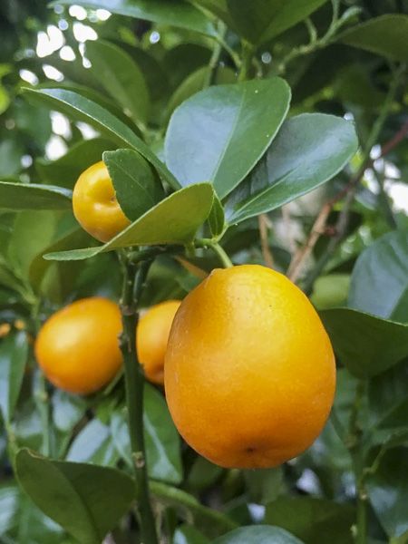 Nombreux fruits orange proche des kumquats en un peu plus gros, à la saveur parfumée, légèrement acide à l'arrière-goût de clémentine.