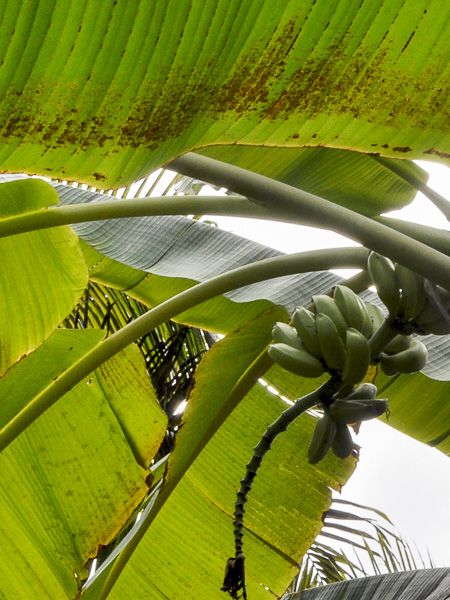 Vivace drageonnante.Les fausses tiges fines, d'abord vertes, deviennent papyracées avec l'âge. Feuilles de 1,5-3 m de long, au limbe vif, arqué, oblong, lancéolé. Fleurs de 2-3 cm de long, jaune pâle ou crème, à grandes bractées brunes, formant des épis terminaux pendants. Fruits de 3-6 cm de long, vert jaunâtre, à pulpe blanche et graines noires, au goût désagréable.