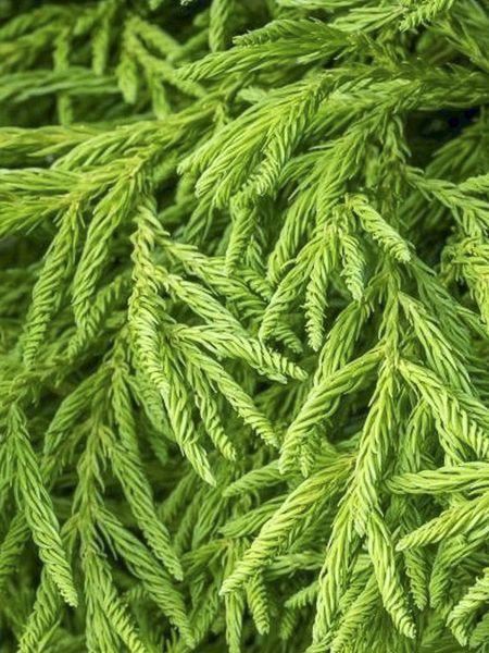 Variété de cèdre du Japon aux branches noueuses et aiguilles spiralées, vert clair.