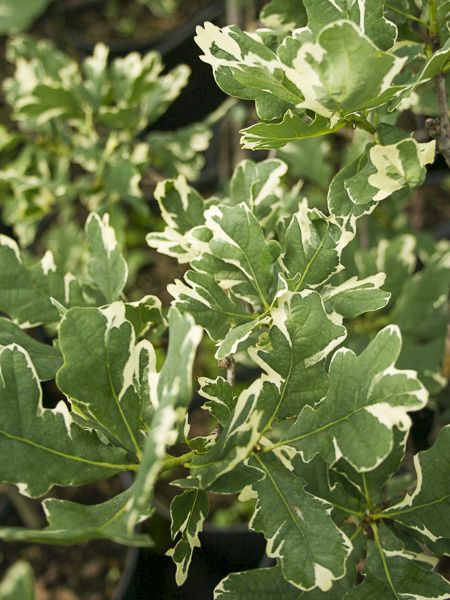Sélection de chêne pédonculé aux feuilles vert tendre, marginées de blanc. Il sera moins imposant que l'espèce type.