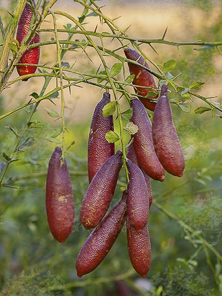 Arbuste au feuillage aromatique et port retombant. Il fleurit en mai-juin, suivi de fruits allongés, pourprés. A cultiver en pot en serre froide ou en pleine terre, bien protégé. Le citron caviar est très prisé en cuisine gastronomique.
