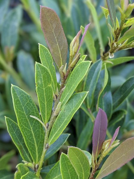 Arbuste dense et compact, à feuillage persistant. Jeunes feuilles pourprées, virant au bleu-vert. Discrète floraison rouge brunâtre. Une bonne alternative au buis en sol non calcaire, à mi-ombre. Très résistant aux maladies. Rustique à 15°C.