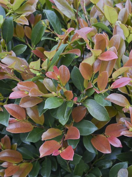 Arbuste au feuillage persistant, dense et compact. Feuilles brillantes, les jeunes rouge cuivré, virant au vert foncé. Floraison rouge sombre en fin d'hiver. Une bonne alternative au buis en sol non calcaire. Très résistant aux maladies. Rustique à 15°C.