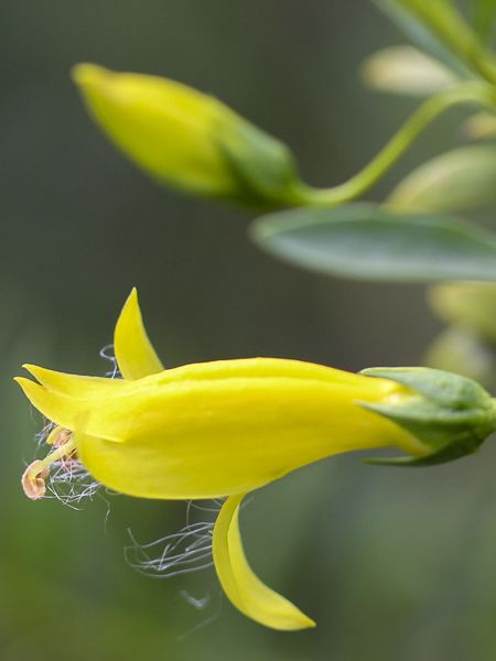 Arbuste originaire d'Australie, au port arrondi. Feuilles persistantes, étroites, vertes à gris clair. Fleurs tubulaires jaunes.