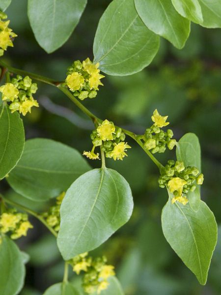 Arbuste dressé, très épineux. Feuilles caduques, ovales, jaunes en automne. Cymes de minuscules fleurs étoilées, jaunes, suivies de fruits de forme originale, en petit chapeau. Il est courant dans le sud-est de la France dans les sols calcaires, secs et arides. Dans ces conditions, il est rustique jusqu'à -12°C.
