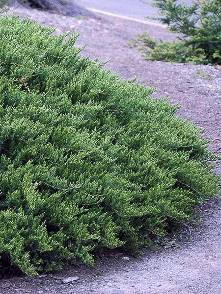Genévrier à port étalé et bas, à ramifications horizontales et superposées, vert argenté à reflets bleuté. Croissance lente.
