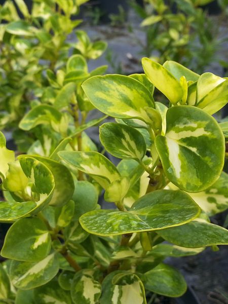 Arbuste dressé, compact à feuilles coriaces et lustrées, panaché de vert et de jaune crème. Excellent en haie brise-vent sur le littoral. Rusticité jusqu'à -5°C.