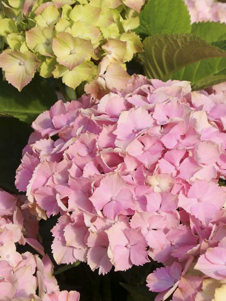 Compact. Inflorescences en boules rose tendre à bleu en fonction de l'acidité du sol, virant au vert. Longue floraison.