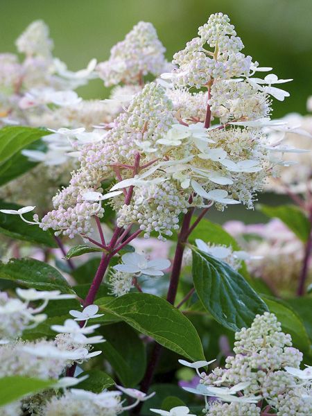 Magnifique arbuste, gracieux, rustique et à croissance rapide, l'Hydrangea paniculata se pare de larges panicules. Le plus souvent blancs au début de l'été, ils se teintent peu à peu de rose puis tournent au rouge foncé en septembre, à condition d'être installés en situation ensoleillée. Les panicules persistent jusqu'en automne et font de magnifiques fleurs séchées. Laissés sur l'arbuste, ils restent très décoratifs parés de givre. Cet hortensia est moins exigeant sur la qualité du sol. Il tolère les terrains plus ingrats (contenant sable et cailloux) ainsi que la sécheresse. Taillez-le en mars, au-dessus du premier il du bois de l'année précédente. Il sera plus compact et fleurira beaucoup plus. Ne taillez pas dans le bois vieux de plus de deux ans, il ne fera pas de nouvelles pousses. Plus tardifs, les feuilles des H. paniculata n'apparaissent pas avant fin mars, voire début avril.