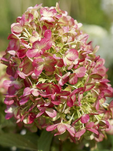 Magnifique arbuste, gracieux, rustique et à croissance rapide, l'Hydrangea paniculata se pare de larges panicules. Le plus souvent blancs au début de l'été, ils se teintent peu à peu de rose puis tournent au rouge foncé en septembre, à condition d'être installés en situation ensoleillée. Les panicules persistent jusqu'en automne et font de magnifiques fleurs séchées. Laissés sur l'arbuste, ils restent très décoratifs parés de givre. Cet hortensia est moins exigeant sur la qualité du sol. Il tolère les terrains plus ingrats (contenant sable et cailloux) ainsi que la sécheresse. Taillez-le en mars, au-dessus du premier il du bois de l'année précédente. Il sera plus compact et fleurira beaucoup plus. Ne taillez pas dans le bois vieux de plus de deux ans, il ne fera pas de nouvelles pousses. Plus tardifs, les feuilles des H. paniculata n'apparaissent pas avant fin mars, voire début avril.