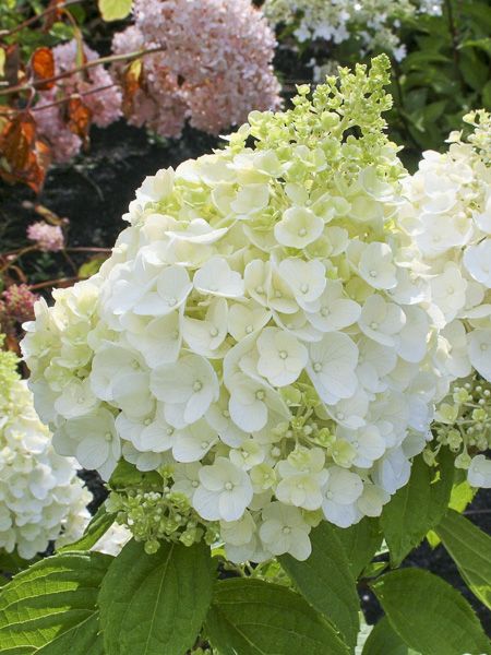 Magnifique arbuste, gracieux, rustique et à croissance rapide, l'Hydrangea paniculata se pare de larges panicules. Le plus souvent blancs au début de l'été, ils se teintent peu à peu de rose puis tournent au rouge foncé en septembre, à condition d'être installés en situation ensoleillée. Les panicules persistent jusqu'en automne et font de magnifiques fleurs séchées. Laissés sur l'arbuste, ils restent très décoratifs parés de givre. Cet hortensia est moins exigeant sur la qualité du sol. Il tolère les terrains plus ingrats (contenant sable et cailloux) ainsi que la sécheresse. Taillez-le en mars, au-dessus du premier il du bois de l'année précédente. Il sera plus compact et fleurira beaucoup plus. Ne taillez pas dans le bois vieux de plus de deux ans, il ne fera pas de nouvelles pousses. Plus tardifs, les feuilles des H. paniculata n'apparaissent pas avant fin mars, voire début avril.