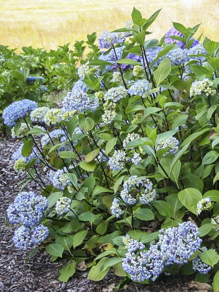 Parmi les l'Hydrangea macrophylla, on distingue deux types d'inflorescences : les têtes rondes (les plus connues) et les têtes plates. La gamme de couleur séchelonne du blanc le plus pur au bleu intense en passant par tous les tons du rose pâle au rouge foncé. La couleur de la fleur (excepté le blanc) peut varier suivant la nature du sol. Si il est acide (pH < 5,5) et qu'il contient du sulfate d'aluminium, les fleurs roses prendront une teinte bleue et les fleurs rouges deviendront violettes. L'Hydrangea macrophylla est un arbuste facile à vivre qu'on associera à d'autres hortensias ou à quelques plantes aimant les sols légèrement acides comme les fougères, les gaulthéries, les lamiers. Il est préférable de tailler ces hortensias après les dernières gelées. La taille provoque la naissance de nouvelles pousses et les boutons floraux naissent rapidement. Si une gelée tardive intervient, ces nouvelles pousses et les boutons risquent d'être endommagés. Il est préférable de supprimer les fleurs fanées après les dernières gelées afin de protéger la plante.