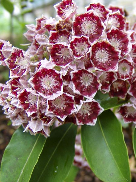 Les Kalmia sont de petits arbustes à feuilles persistantes lustrées. En fin de printemps, leurs fleurs originales, en bouquets, sont en coupe, rose plus ou moins foncé. Cet arbuste, de la même famille que les bruyères, doivent être planté en sol acide (ou terre de bruyère), sinon il risque de dépérir. Attention toutes les parties de la plante sont toxiques, en cas d'ingestion.