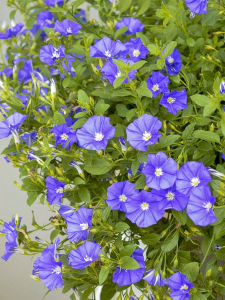 Variété couvre-sol de Convolvulus, se couvrant de fleurs bleu lavande profond à œil blanc, tout l'été et une partie de l'automne. Elle convient parfaitement aux jardins de rocailles et habille magnifiquement les murets exposés au sud.
