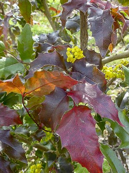 Bel arbuste au feuillage persistant vernissé ressemblant à celui du houx, le mahonia fleurit de la fin de l'été au début du printemps, selon les espèces et variétés. Cet arbuste fait la joie des jardiniers pour sa floraison jaune ou parfois cuivré, souvent parfumée, à une époque moins généreuse dans ce domaine, mais aussi pour sa facilité de culture et d'entretien, la coloration hivernale de son feuillage, ses fruits décoratifs, comestibles (à condition de les cuire) et appréciés des oiseaux. Il est préférable de consommer les baies cuites. Crues, les alcaloïdes qu'elles contiennent provoquent des troubles digestifs. Les mahonies préfèrent les expositions légèrement ombragées à moyennement ombragées. Ils n'apprécient pas les ombres trop denses. En plein soleil, il faut leur éviter les expositions brûlantes.