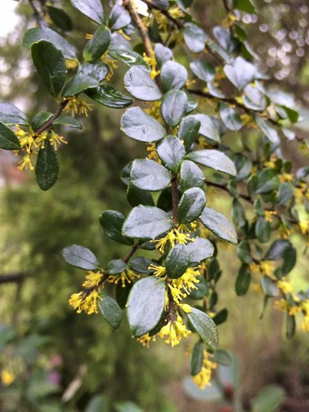 Arbuste ou petit arbre dressé aux petites feuilles persistantes, vert brillant. En fin d'hiver, il produit des petites grappes de fleurs jaunes, au parfum de vanille.
