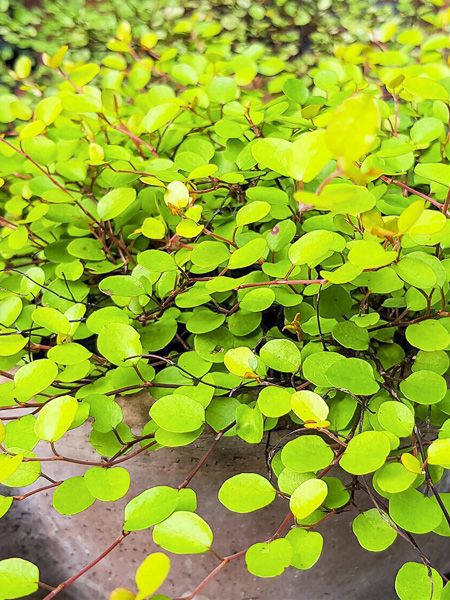 Arbuste grimpant, volubile ou couvre-sol, d'origine néo-zélandaise. les tiges grêles sont garnies de petites feuilles rondes, jaunes virant au vert tendre, persistantes en climat doux. Il formera rapidement un couvre-sol ou partira à l'assaut d'une clôture. On peut aussi le cultiver en pot, en suspension. Rusticité jusqu'à -8°C.