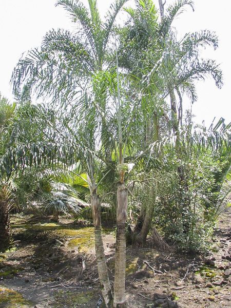 Palmier mnonïque, à tronc unique de 40 cm de diamètre, et de 5-6 m de haut. Palmes poussant sur trois axes opposés, tel un triangle équilatéral. Feuilles pennées, assez longues et fines, folioles régulièrement réparties sur un pétiole assez rigide.