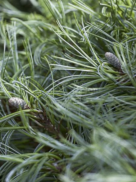Pin nain au feuillage dense, au port d'abord globuleux, puis plus irrégulier. Ses aiguilles sont longues, souples, bleu argenté. Pousse lente, 15 cm par an. Pour petit jardin ou rocaille.