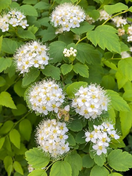 Espèce botanique de spirée au port buissonnant. Feuilles oblongues, dentées, vert vif, orangées en automne. Fleurs en corymbes hémisphériques blancs, du milieu du printemps à l'été. Très accommodante.