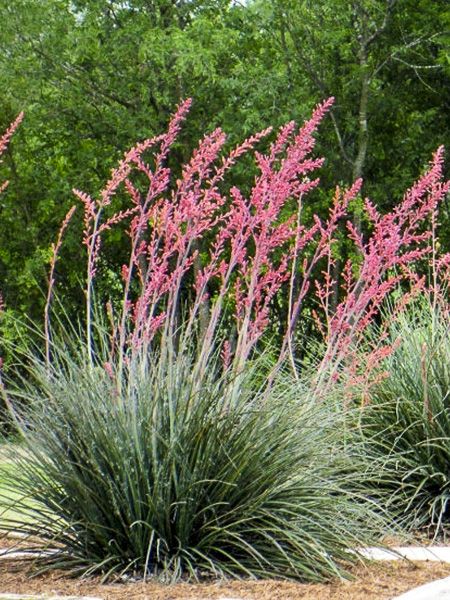 Vivace succulente proche du Yucca aux longues feuilles linéaires s'effilochant sur les bords. Panicules de nombreuses petites fleurs rouges à gorge jaune.