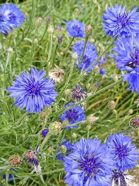 — Plante annuelle ou bisannuelle de 3-8 dm, d'un vert blanchâtre un peu cotonneuse, dressée, à rameaux grêles, allongés ; feuilles non décurrentes, les inférieures pennatipartites, pétiolées, les suivantes sessiles, étroites, linéaires ; involucre ovoïde à folioles entourées d'une marge fortement décurrente et de cils courts ordinairement argentés ; akènes à ombilic barbu surmontés d'une aigrette rousse égalant à peu près leur longueur ; fleurs bleues, les extérieures rayonnantes. Champs, moissons partout ; Corse. — Europe, Orient. = Mai-juillet.