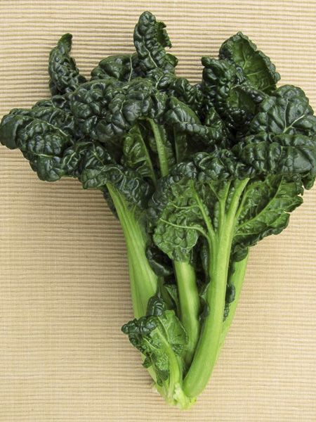 Annuelle formant un rosette de feuilles crispées, vert foncé.