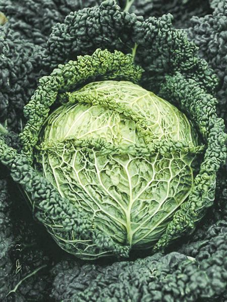 Variété tardive aux belles pommes sphériques. Feuilles gaufrées, vert brillant. Bonnes qualités gustatives.