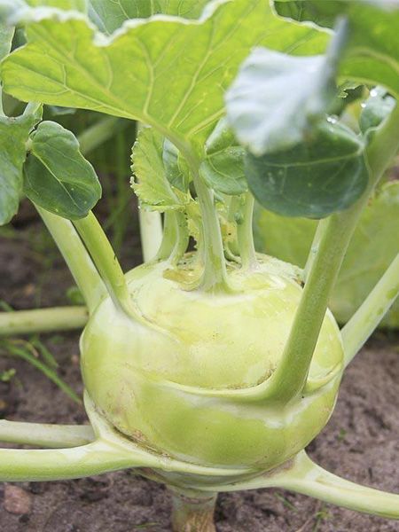 Le chou-rave est très riche en vitamine C. Sa tige renflée se consomme crue, rapée en salde ou cuite en soiupe et ragoûts. Récolte 6 semaines après le semis sous abri en fin d'hiver, en pleine terre après les dernières gelées.