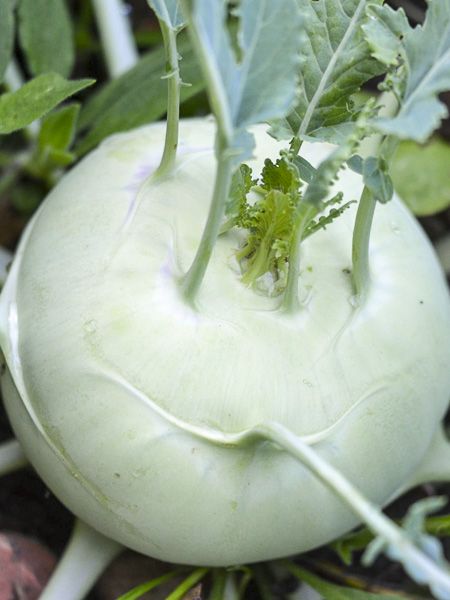 Le chou-rave est très riche en vitamine C. Sa tige renflée se consomme crue, rapée en salde ou cuite en soiupe et ragoûts. Récolte 6 semaines après le semis sous abri en fin d'hiver, en pleine terre après les dernières gelées.