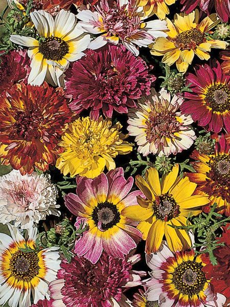 Fleurs simples ou doubles, dans les tons blanc, jaune, rose, rouge et pourpre.