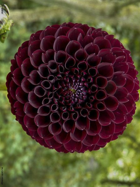 Fleurs en pompon, de 8 cm de diamètre, pourpre sombre.