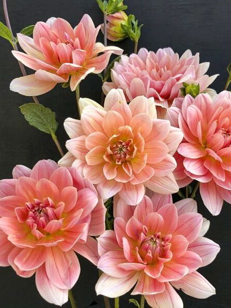 Dahlia aux fleurs bien doubles, de 8 cm de diamètre, rose saumoné.