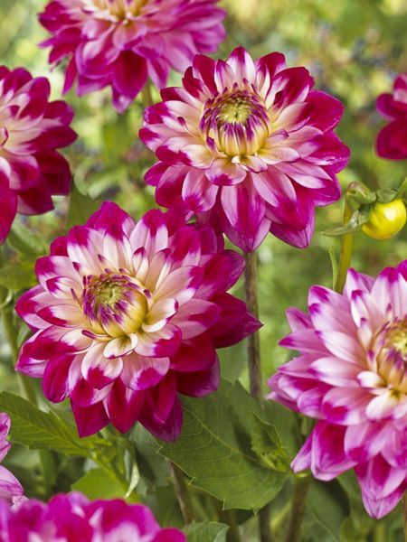 Jusqu'au milieu du siècle dernier, les dahlias faisaient partie intégrante des jardins, surtout dans les potagers. On venait régulièrement y couper les fleurs pour confectionner des bouquets frais. Délaissés depuis, ils reviennent à la mode pour agrémenter les massifs de leurs couleurs vives du début l'été, jusqu'aux gelées. Plus vous coupez les fleurs, plus il en produit de nouvelles. Dans les zones à hiver froid, il est préférable d'enlever les tubercules de la terre juste après les premières gelées, les conserver dans un endroit frais et sec, pour les replanter après les dernières gelées de printemps. Si vous souhaitez qu'ils fleurissent plus tôt en saison, il faut les forcer en les installant dans des pots à partir du mois de mars pour les replanter en pleine terre au milieu mois de mai. Pour un maximum de fleurs, installez-les dans une terre riche, toujours fraîche et au soleil.