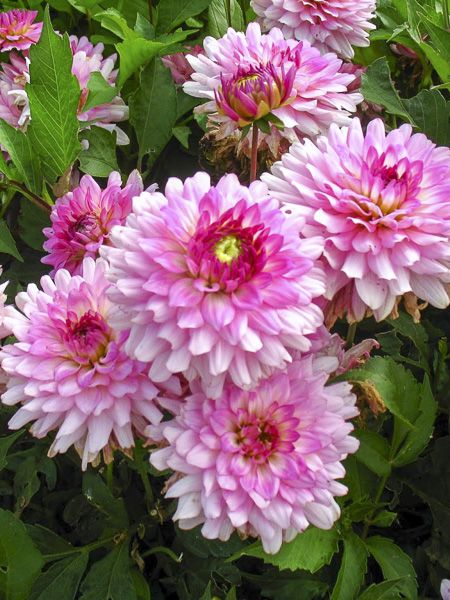 Ces dahlias nains à fleurs doubles aux pétales larges (forme décorative) présentent une végétation compacte qui se prête parfaitement à la réalisation des bordures, massifs bas et plates-bandes ou encore de potées fleuries. Hauteur de 35 à 70 cm. Diamètre des fleurs de 7 à 14 cm. Densité de 6 à 8 au m2.