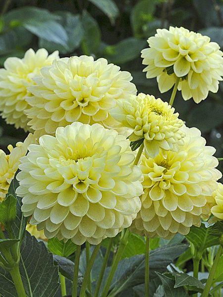 Nain et compact. Fleurs doubles, en pompon de 5 cm de diamètre, jaune citron.
