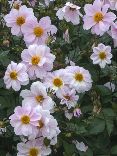 Fleurs simples de 6 cm de diamètre, rose très doux.