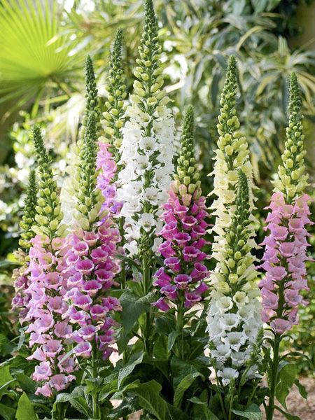 La digitale la plus connue est une bisannuelle. Les feuilles ovales, vertes, sont disposées en rosette. Elle se ressème sur place à condition de ne pas couper les fleurs fannées.