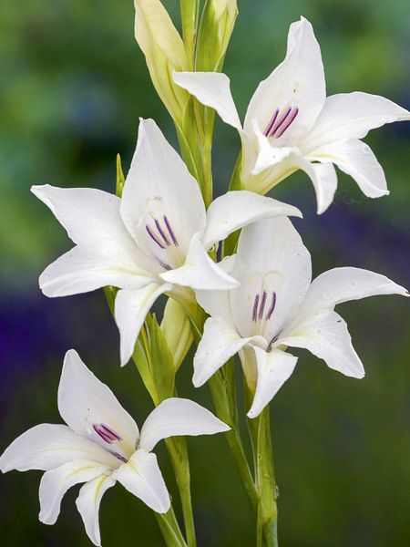 Ce glaïeul nain produit de jolis épis de fleurs blanches, marquées de jaune, à étamines pourpres. Plantez-le dès avril pour une floraison en juin.