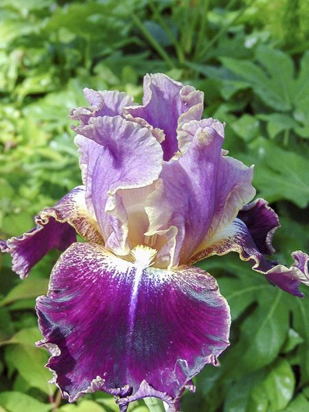 C'est l'iris barbu ou l'iris des jardins avec ses milliers de cultivars aux grandes fleurs très caractéristiques aux tons variant du blanc pur au (presque) noir, en passant par les toutes les gammes de bleu au violet, mais aussi rose, orange et jaune. Certains sont bicolores. On l'appelle "mange-cailloux". Quand vous les planter, il faut laisser à l'air libre environ 1/3 du rhizome. Cultivez-les dans une terre légère, pas trop riche, même caillouteuse et en plein soleil. Ne lui ajouter pas d'engrais azoté et ne l'arroser pas trop, sinon il produira de belles feuilles, mais peu ou pas de fleurs. Au bout de quelques années, les rhizomes du centre meurent après avoir fait des "petits" sur le bord. En juillet-août, il faut alors supprimer cette partie centrale, retirer les rhizomes sains et les replanter, si possible dans un autre endroit, car l'iris a tendance à épuiser le sol. Il arrive souvent, après la floraison, que les feuilles se tachent et deviennent moins esthétiques, cela ne nuit pas à la plante.