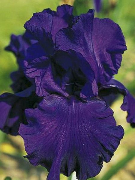 Iris des jardins aux fleurs ondulées, violet profond, légèrement parfumées. Floraison de mi-saison.