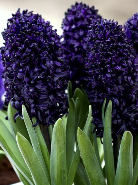 Certainement la plus sombre des jacinthes aux grappes de fleurs noir satiné à liseré violet.