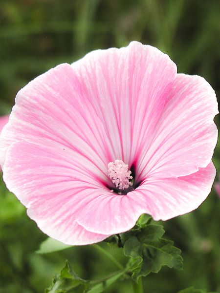 Annulle ramifiée, à poils dispersés. Feuilles suborbicales, palmatriangulaires, 3-5 cm de long. Fleurs axillaires, solitaires, en entonnoir, 7-10 cm de diamètre, pédicellées, à bractées involucrales soudées sur presque toute leur longueur, plus courtes que les épales ; pétales blancs, roses ou rouges, 25-45 mm de long. Fruit à 10-15 méricarpes. (2n=14).