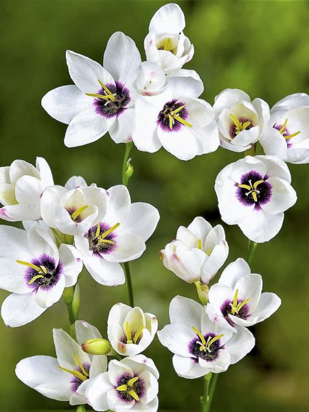 Vivace facile de culture en climat doux, produisant des épis de fleurs étoilées blanc cassé à cœur pourpre. Rusticité jusqu'à -4°C.