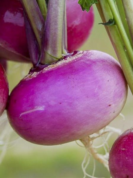 Racines sphériques, à collet rose violacé. Chair blanche, ferme et sucrée. Variété résistante, rustique, facile de culture, s'accommodant de la majorité des sols.